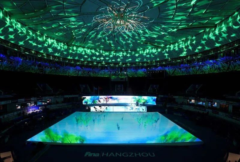 杭州奥体中心游泳馆是亚运会游泳、跳水、花样游泳项目的比赛场馆及训练场馆,金沙990视效科技为场馆运行保驾护航,见证中国“游泳天团”一骑绝尘。