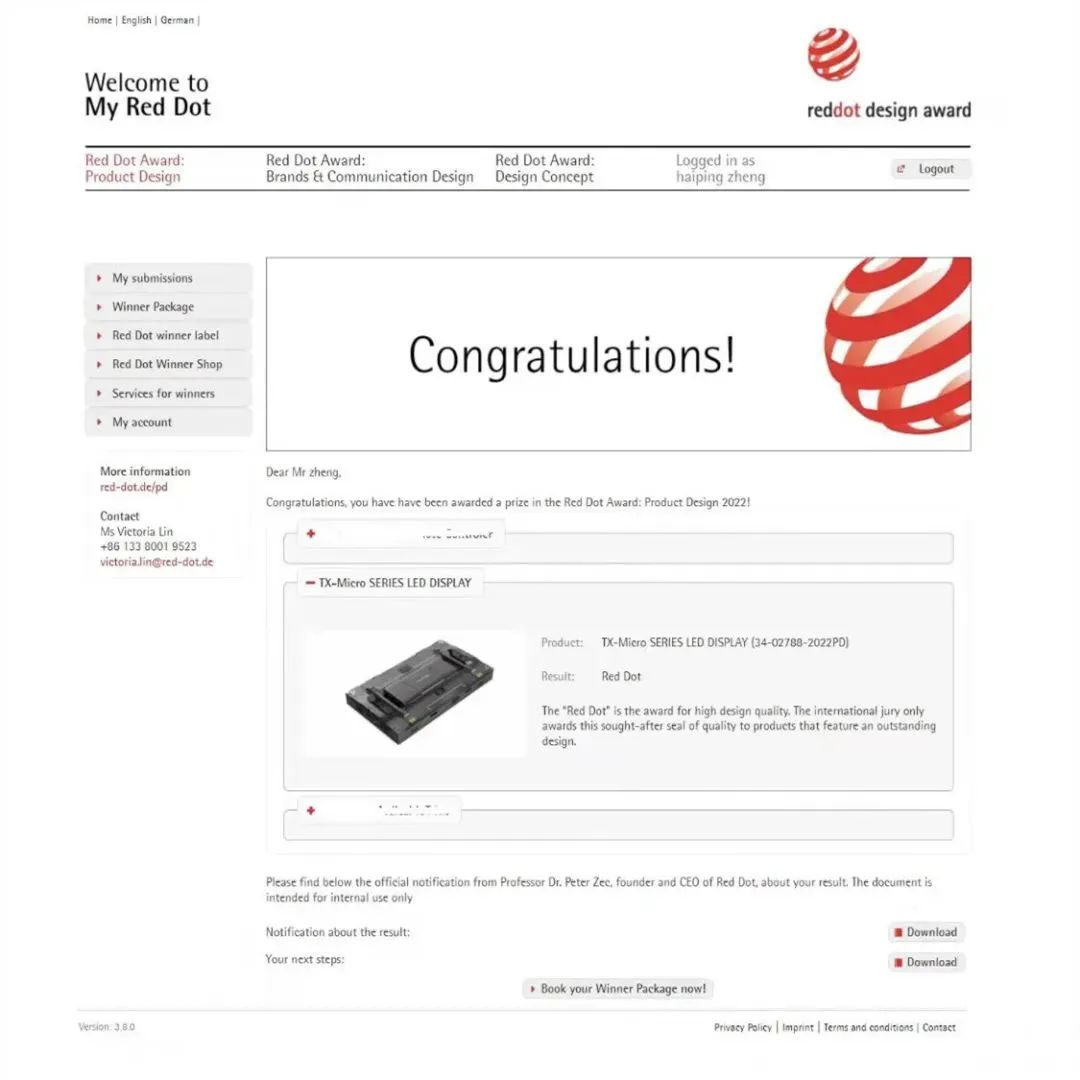 2022年,TX系列产品夺得设计界奥斯卡奖红点设计奖